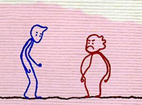 نظر شما چیه؟ مرد رند قرمزرنگ، همیشه کارهای بدی میکند و سپس از مرد سادهدل آبیرنگ میخواهد در ازای دستمزدی، کار بد او را درست کند.